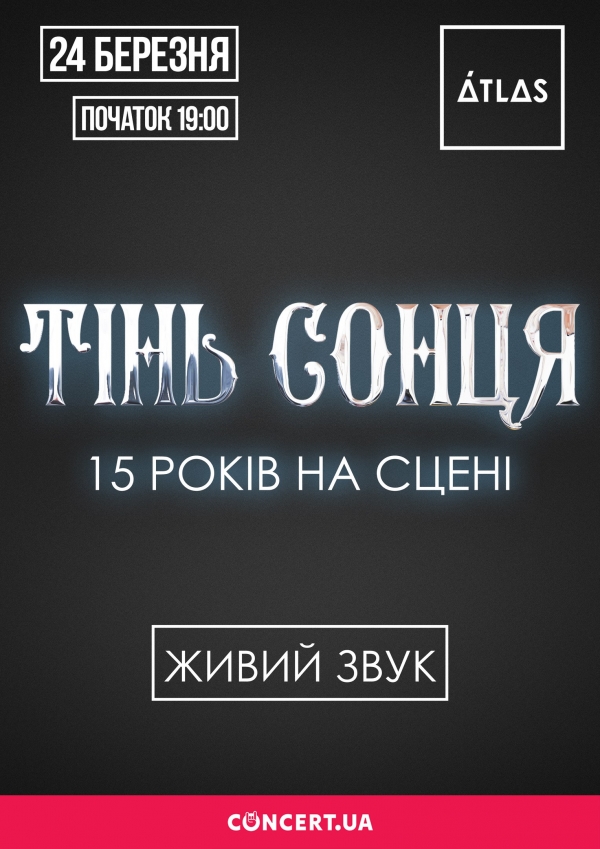 25 березня у столичному клубі «Atlas» «Тінь Сонця» зіграє великий сольний концерт в рамках ювілейного туру «15 років на сцені».